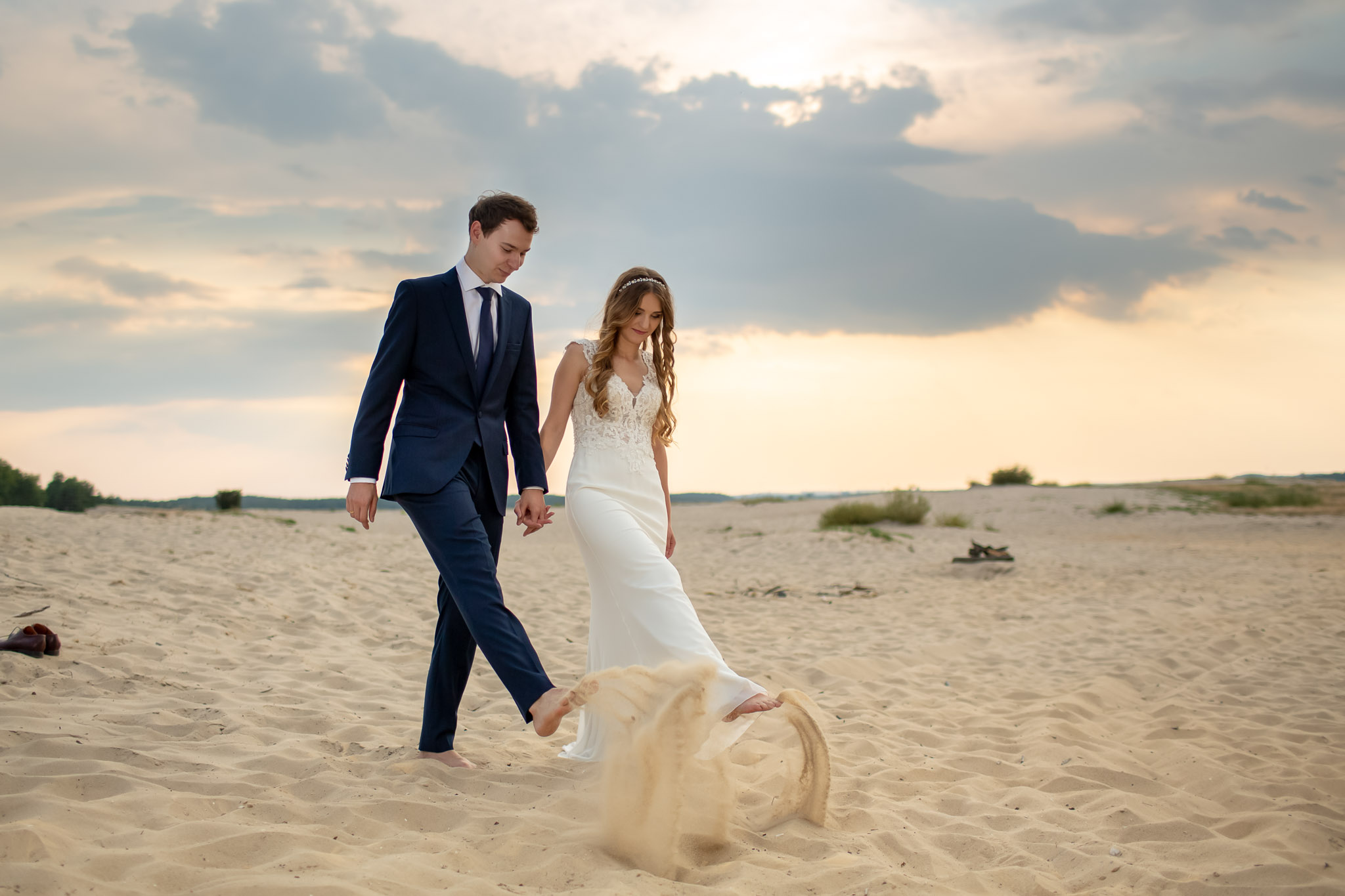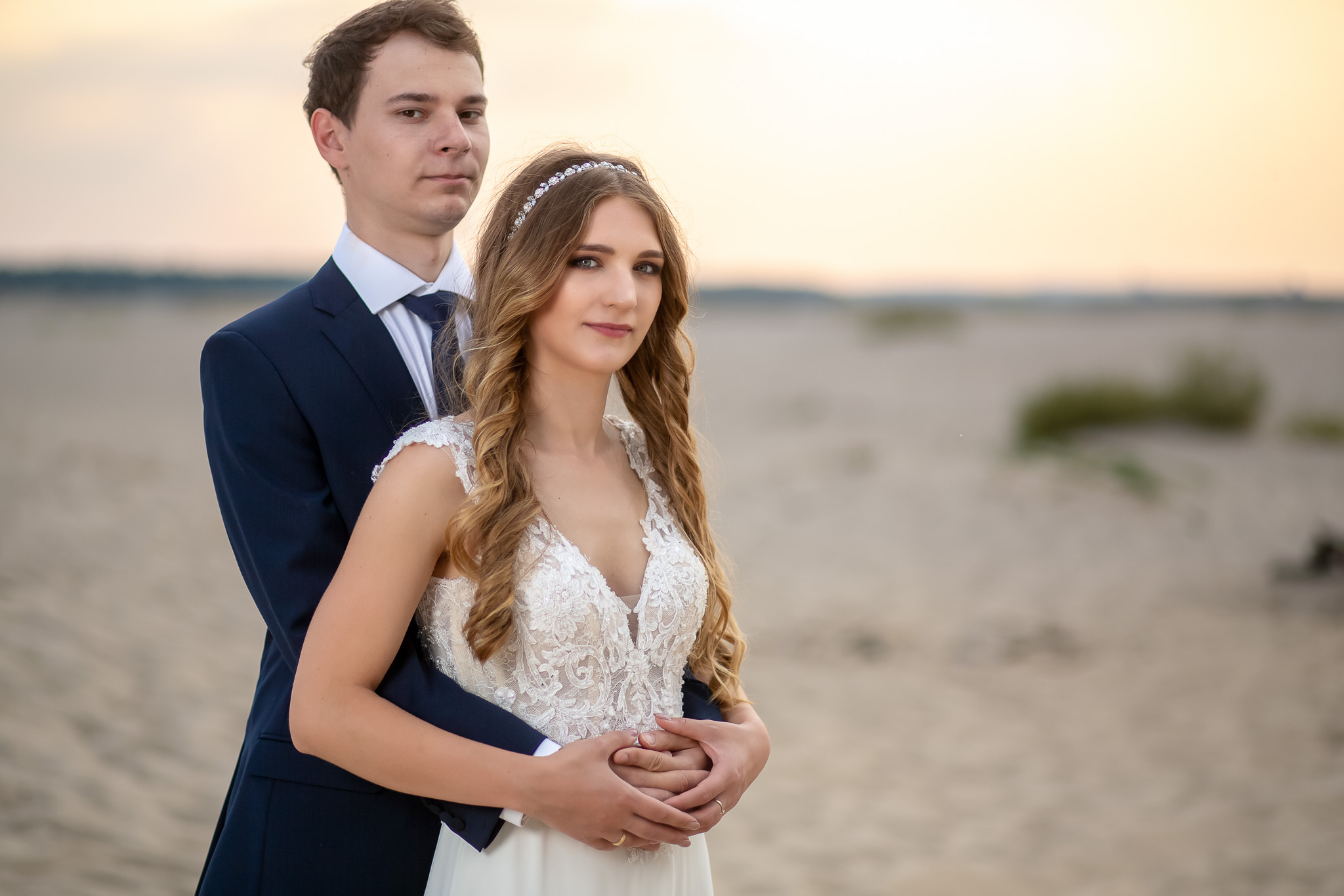 Ola i Arek, otoczeni złotym piaskiem pustyni Błędowskiej, uchwycili momenty pełne miłości i magii, gdy słońce schodziło za horyzontem.